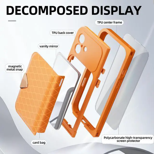 Multifunctional Design: Equipped with a portable makeup mirror, a card slot, and a leather strap, this case offers a stylish and practical solution for your everyday needs.
