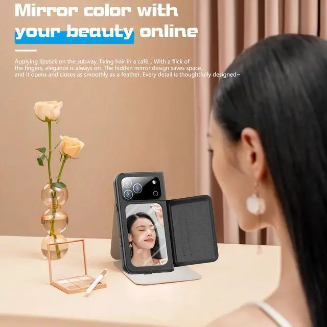 Multifunctional Design: Equipped with a portable makeup mirror, a card slot, and a leather strap, this case offers a stylish and practical solution for your everyday needs.