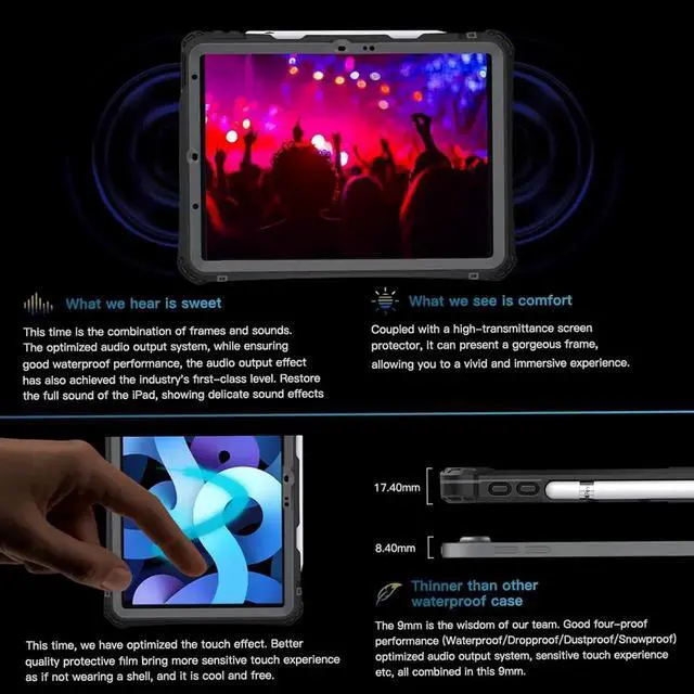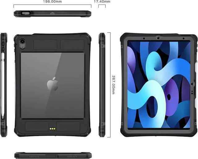 Waterproof case for iPad Air 11 Inch (M4) 2026(Model: A3459/A3460/A3463), iPad Air 11 Inch M3 2025(Model:A3266/A3267/A3270)/iPad Air 11 Inch M2 2024 (Model: A2902/A2903/A2904)/iPad Air 5th generation 10.9 inch 2022(Model:A2588/A2589/A2591)/iPad Air 4th generation 10.9 inch 2020 (Model:A2072/A2316/A2324/A2325); not compatible with any other iPad models.
