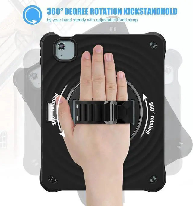 [360° ROTATING HAND STRAP FOR SECURE GRIP AND CONTROL] - Easily use your compatible iPad with one hand and avoid accidental drops with the adjustable 360° rotating hand strap. This secure grip feature is perfect for all your activities, whether you're standing, sitting, or moving around.