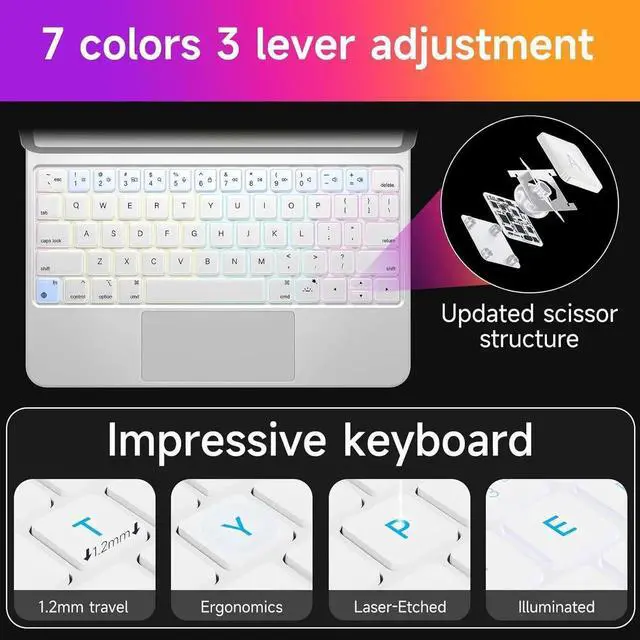 Precision Multi-Touch Trackpad --- The Upgraded full-area click and integrated multi-touch trackpad made by etching process and powerful linear motor,allows you accurately control your iPad pro 11 with different gestures such as scrolling, swiping, and tapping,as well as multimedia functions,smooth,no stuttering,no lag,and easy to clean.