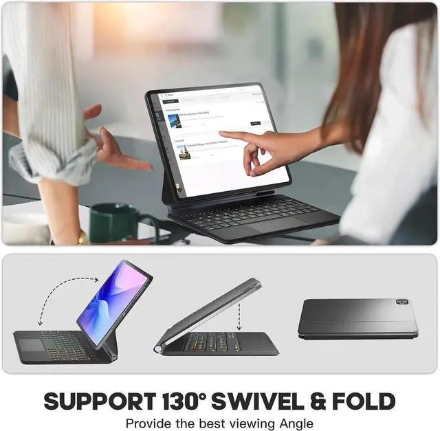 STRONG MAGNETIC STAND: Magic keyboard case for iPad Air 11-inch features a floating design with the strong magnetic stand that holds your iPad firmly in place. The floating cantilever provides a 135° adjustable viewing angle, allowing you to select the most comfortable angle to elevate your iPad experience for any occasion.
