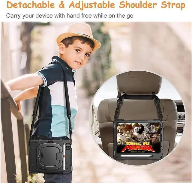 Removable & Adjustable Shoulder Strap: The portable shoulder strap helps you carry your iPad conveniently when you are at work, on a trip or outdoors. It can be attached to any two holes in the PC cover to carry your device vertically or horizontally like a messenger bag, you could even hang it behind the head rest of car seat or wherever you want. The length of the shoulder strap can be adjusted to fit adults or kids.