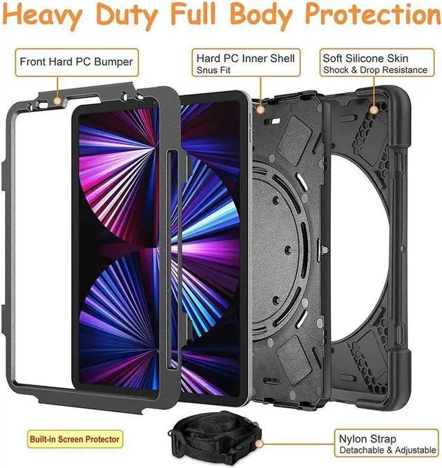 Durable Protection: 3-layer shockproof Heavy Duty Rugged protection case for iPad, combined with 1-layer soft silicone and 2-layer hard polycarbonate front frame and back cover, providing perfect protection for your iPad against accidental drops, scratches, shocks and dust, helping keep your iPad as beautiful as the day you take it out of the box.