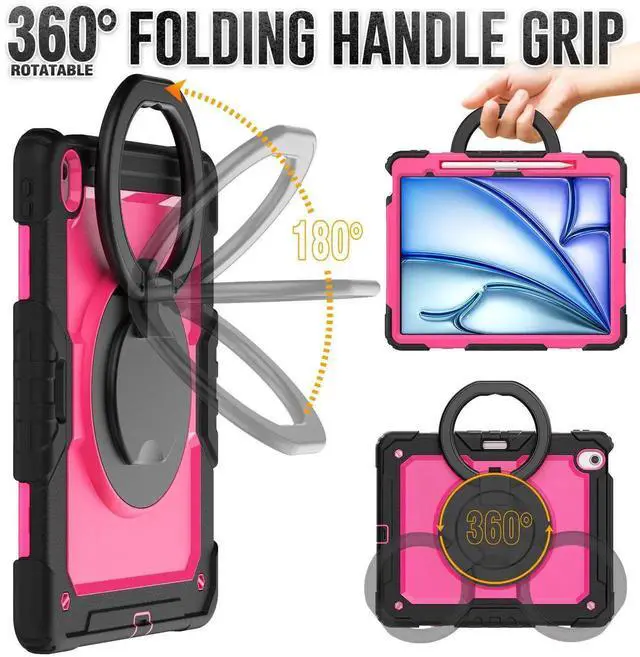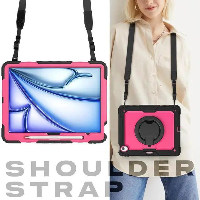[SHOULDER & HAND STRAP]Elevate your outdoor iPad experience with the iPad Air 13-inch case featuring a shoulder strap,designed to free up hands and provide convenient outdoor carrying without the worry of accidental drops. Also features a hand strap that supports horizontal and vertical, ensuring a secure grip on the iPad during use to prevent accidental slips from hands.Stay connected and protected wherever you go with this versatile case designed for active lifestyles.
