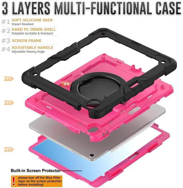[MATERIAL & with built-in screen protector] The iPad case is made of PC+Silicone and has passed military-grade certification. It has undergone drop tests exceeding 10000+ times to ensure maximum protection for your device. Equipped with a screen protector, effectively prevents accidental scratches on your screen, keeping it safe from damage.