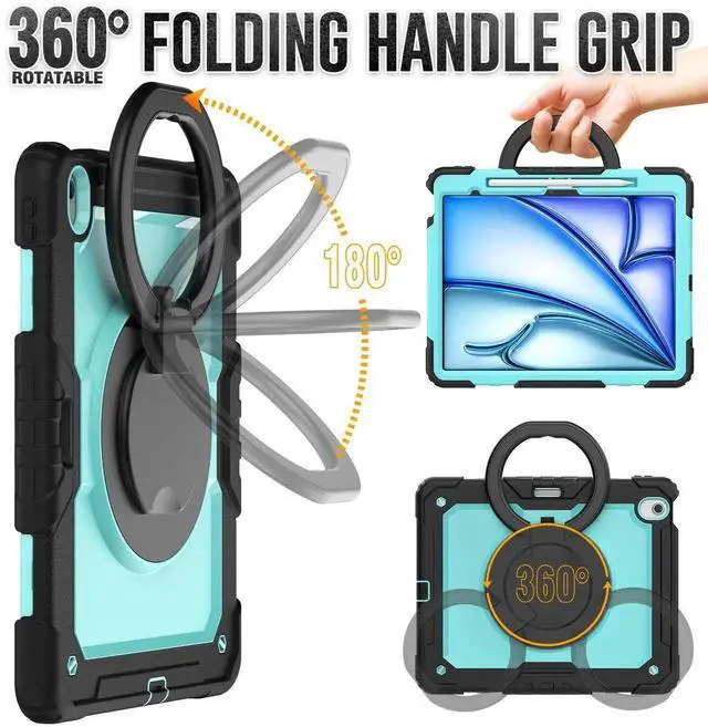 [SHOULDER & HAND STRAP]Elevate your outdoor iPad experience with the iPad Air 13-inch case featuring a shoulder strap,designed to free up hands and provide convenient outdoor carrying without the worry of accidental drops. Also features a hand strap that supports horizontal and vertical, ensuring a secure grip on the iPad during use to prevent accidental slips from hands.Stay connected and protected wherever you go with this versatile case designed for active lifestyles.