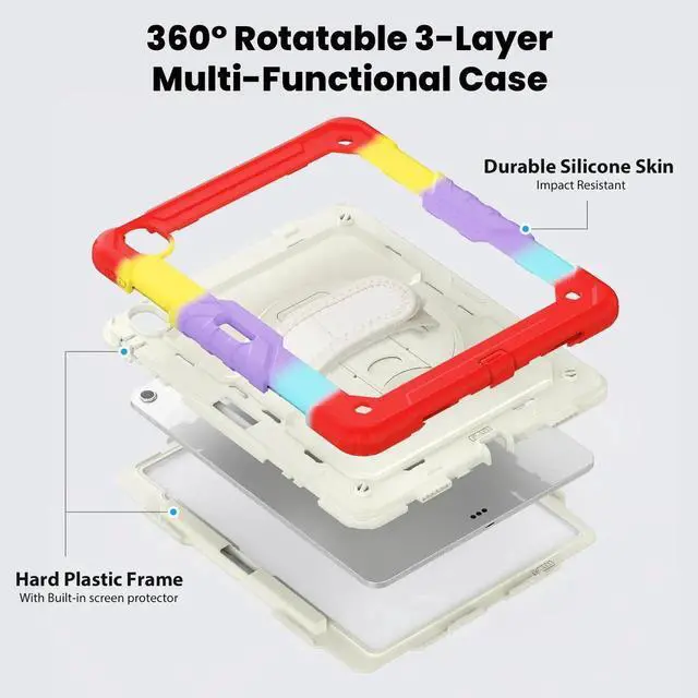 [MATERIAL & with built-in screen protector] The iPad case is made of PC+Silicone and has passed military-grade certification. It has undergone drop tests exceeding 10000+ times to ensure maximum protection for your device. Equipped with a screen protector, effectively prevents accidental scratches on your screen, keeping it safe from damage.