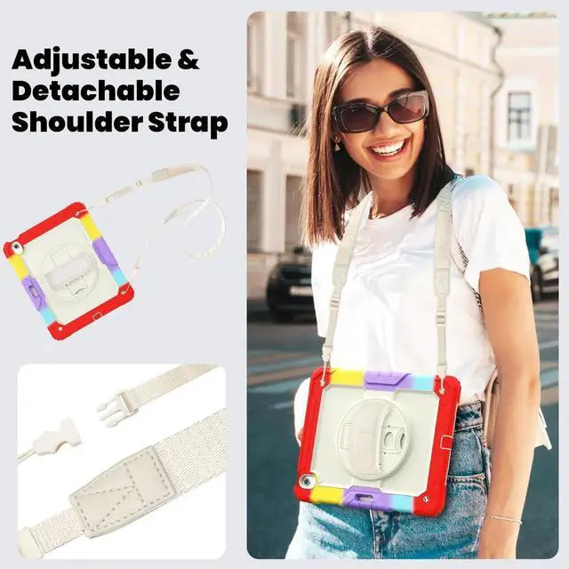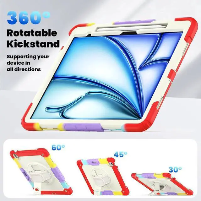 [SHOULDER & HAND STRAP]Elevate your outdoor iPad experience with the iPad Air 13-inch case featuring a shoulder strap,designed to free up hands and provide convenient outdoor carrying without the worry of accidental drops. Also features a hand strap that supports horizontal and vertical, ensuring a secure grip on the iPad during use to prevent accidental slips from hands.Stay connected and protected wherever you go with this versatile case designed for active lifestyles.