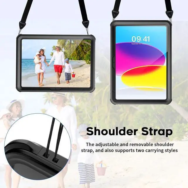 Foldable Stand & Portable Shoulder Strap: Our waterproof iPad case comes with a stand for easy viewing and freeing up your hands. It also comes with an adjustable length shoulder strap for adults or kids. You can hang it in your kitchen, bedroom, car seat for easy access or carry it outdoors.