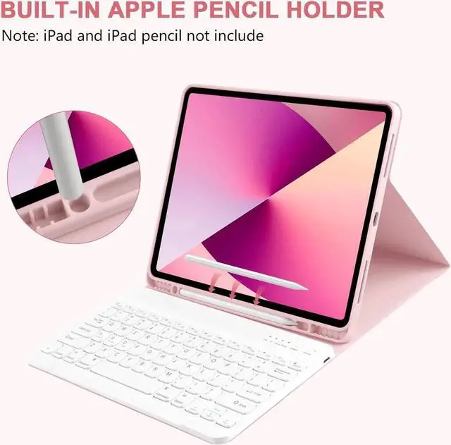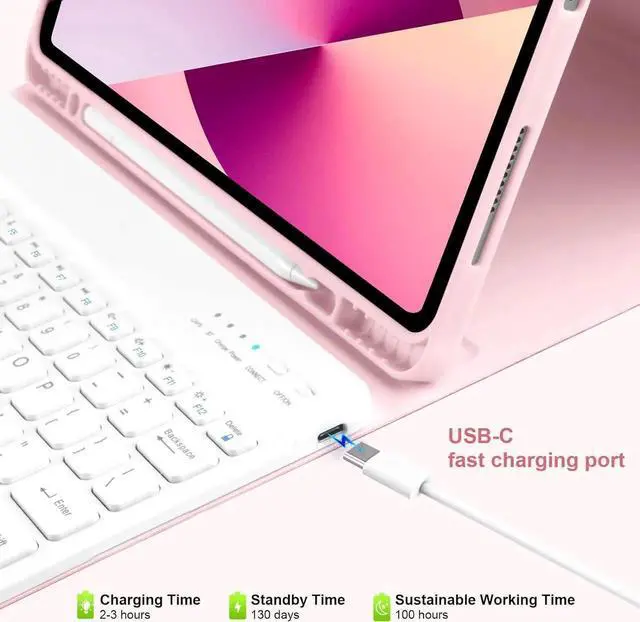 Built-in Pen Holder & Perfect Cutout: This iPad Case Keyboard built-in Apple Pencil holder, cap and adapter slot to store your Apple Pencil, easily carry your iPad stylus and get it whenever you need it. Precise cutouts allow full access to all ports, speakers, microphone and camera. The built-in rechargeable battery can prolong the battery life, fully charge in 2-4 hours, work for more than 80 hours, and stand by for 120 days.