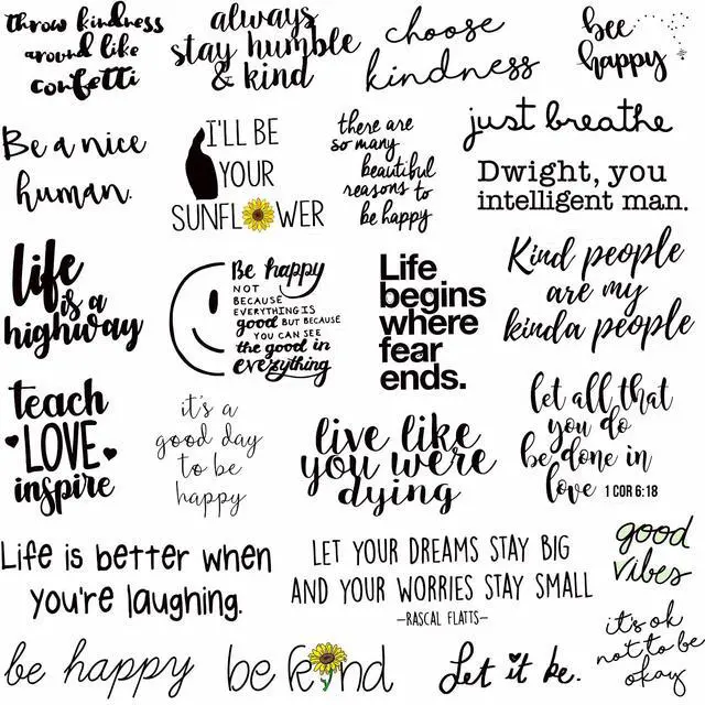MaterialsAll motivational stickers are made of high-quality PVC with sun protection and waterproof features, preventing splashes in daily life while maintaining bright colors for a long time. Safe and non-toxic. Will not fade out.