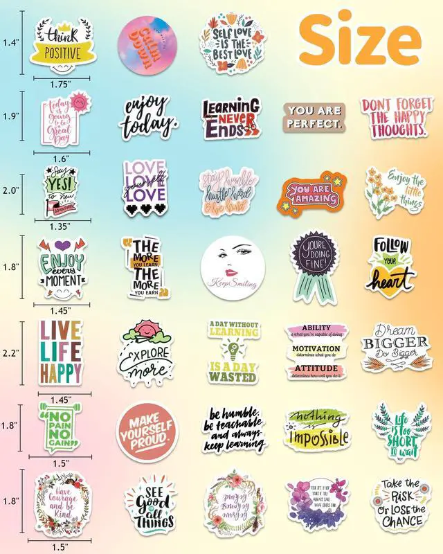 300 PCS MOTIVATIONAL STICKERS: Each pack contains 300 positive affirmation stickers with no duplication and random delivery. You will receive all stickers shown in the main picture. All decals are approximately 5.79 x 4.49 x 0.67 inches in size, meeting various decoration needs.