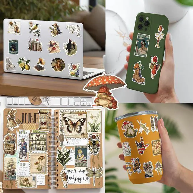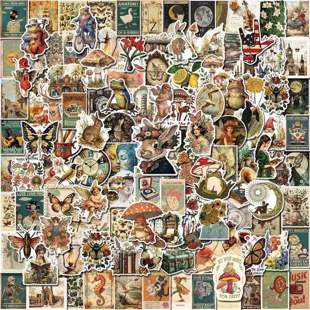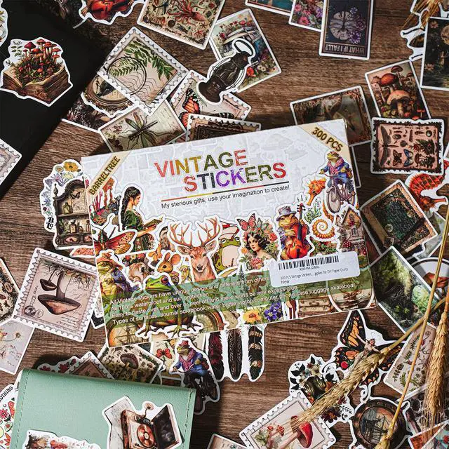 300 Unique Vintage StickersThis sticker pack includes 300 non-repeating retro-style stickers, each sized at 3.5"L x 2"W. Designed with nostalgic themes like flowers, mushrooms, butterflies, old maps, and antique papers perfect for decorating journals, scrapbooks, bullet journals, junk journals, and creative DIY projects.