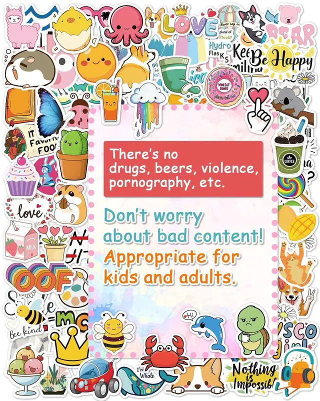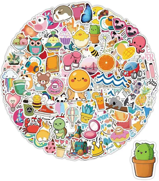 100 Pcs Stickers for Kids, Cute Water Bottle Vinyl Waterproof Laptop Stickers for Students Gifts School Supplies Classroom Teacher Prizes Sticker Pack for Girls Teens