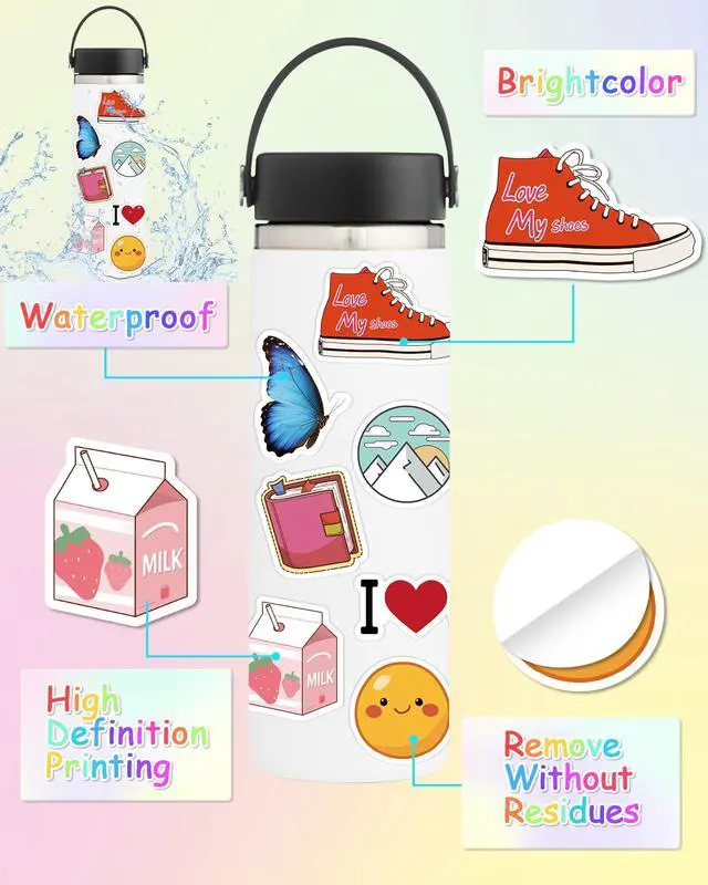 STYLISH DECORATIONS: These cute stickers are fashionable and suitable for decorating water bottles, scrapbooks, laptops, computers, notebooks, guitars, luggage cases, mobile phones, and more. They are perfect for school supplies. These stickers can meet your different decoration needs and make your life more beautiful and happy.