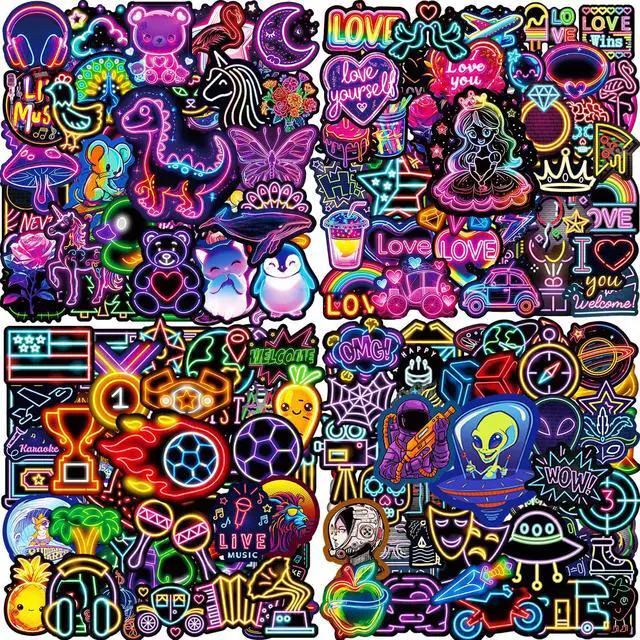 Unique Style: You will receive 200 sheets of cool neon stickers featuring cute and fun neon elements. Patterns include various health designs (as shown) with no repeats. Great for decorating the surface of items or giving as gifts.