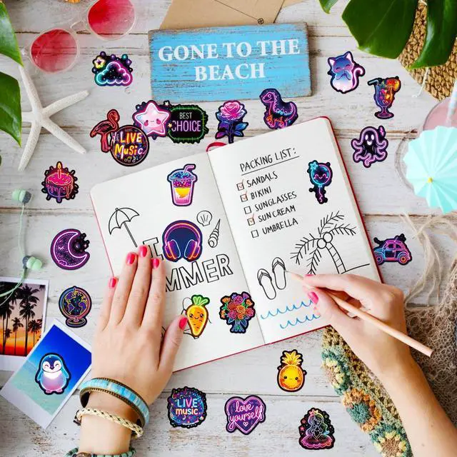 Widely Used: Add a trendy neon element to a variety of items. Use these stickers for water bottles, laptops, scrapbooks, notebooks, mugs, MacBooks, iPads, phones, computers, journals, skateboards, luggage, suitcases, cups, planners, binders, snowboards, scooters, mopeds, longboards, guitars, bikes, etc.