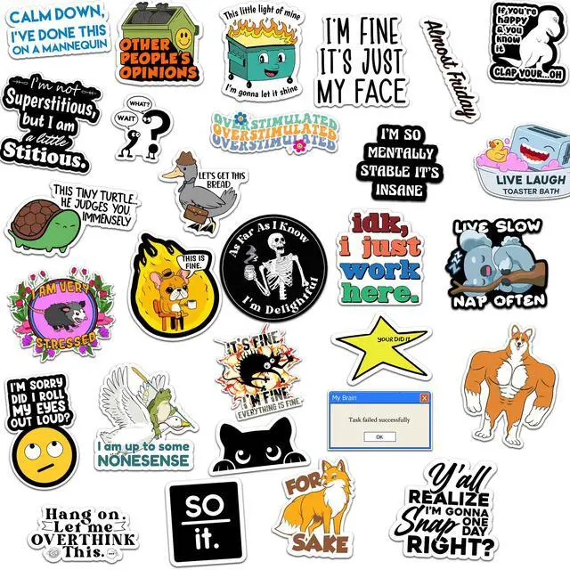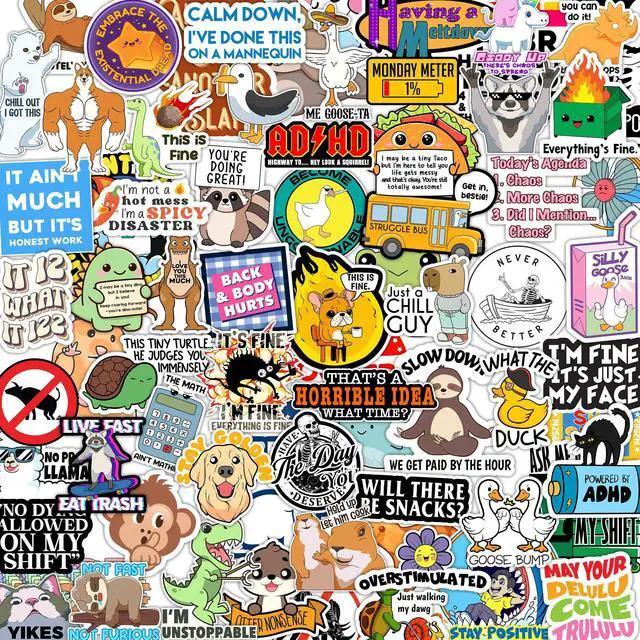 Diverse Themes: From quirky slogans to playful illustrations, these stickers cover a wide range of themes and styles, perfect for adding personality and flair.