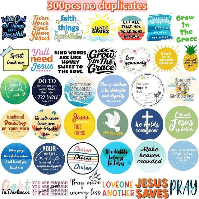 300pcs Inspiring StickersSpread love and devotion with our 300-pack stickers (no duplicates!), featuring uplifting messages like Jesus Saves, Love God Love People, and You are Worthy. Perfect for Bible study supplies, Sunday school rewards, or gifts for kids, teens, and adults. These stickers add a touch of faith to water bottles, laptops, phone cases, and more!