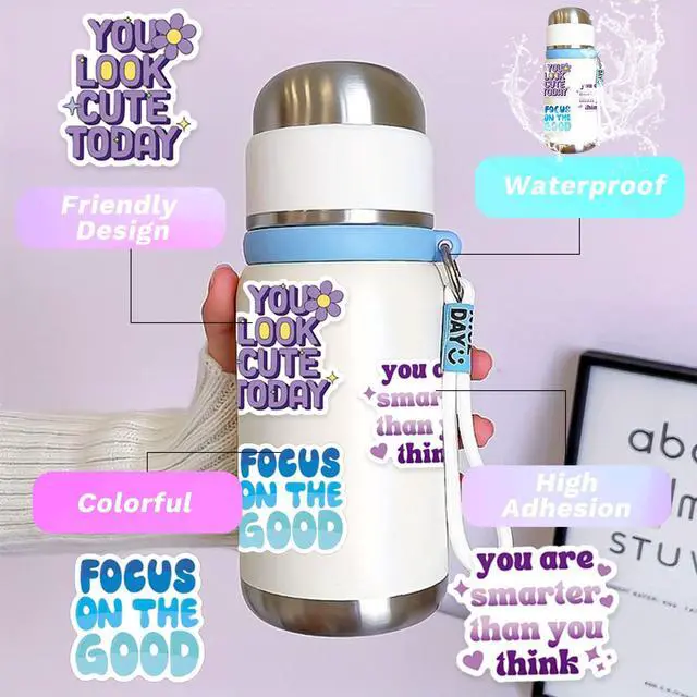 Widely Used: Perfect for a variety of surfaces, these stickers can be used on water bottles, laptops, journals, scrapbooks, computers, skateboards, planners, cups, luggage, notebooks, guitars, scooters, and moreadding a personal, uplifting touch anywhere.