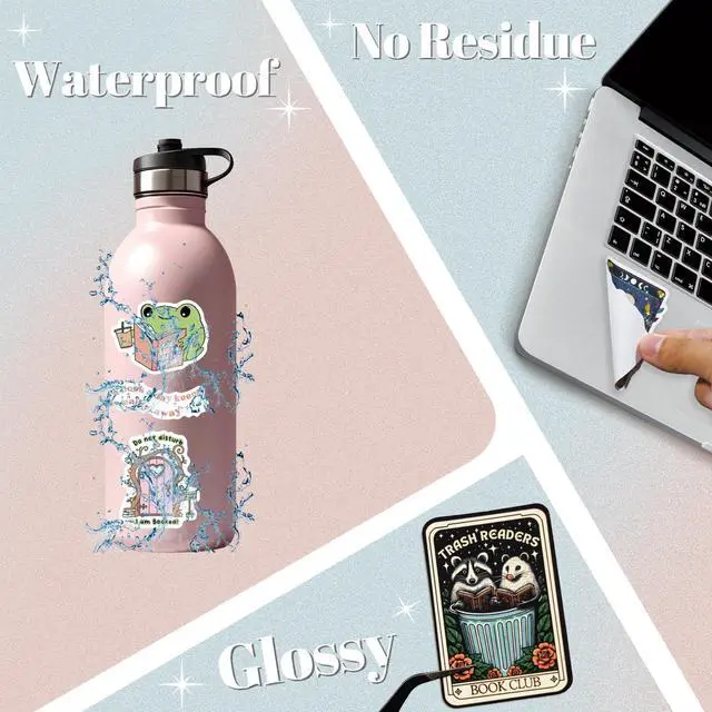 Glossy Bookish Stickers: Crisp, high-gloss finish that delivers bold, vivid colors and a clean shine perfect for readers who love a polished, aesthetic look on their laptop, Kindle, water bottle, and more.