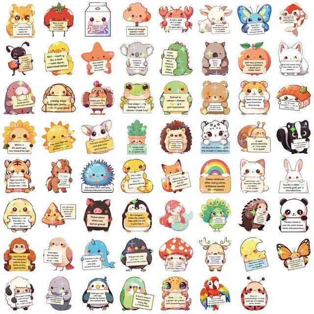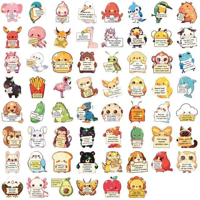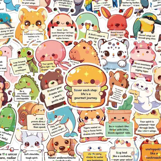 125 Unique Cute Animal Designs Each waterproof sticker features adorable animals with uplifting affirmations perfect for daily motivation, mental wellness, and self-love. Ideal as cute emotional stickers for adults & kids.