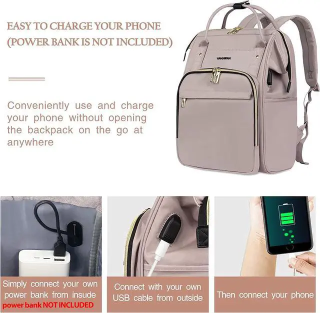 USB CHARGING PORT & RFID BLOCKING: VANKEAN work bag has a USB charging port extended on the side of the backpack and built-in a charging cable inside, it offers easy access to charge your phone (POWER BANK is not included). RFID design pockets protect your personal information security, there are three card slots. No more worries about data theft by RFID scanners.