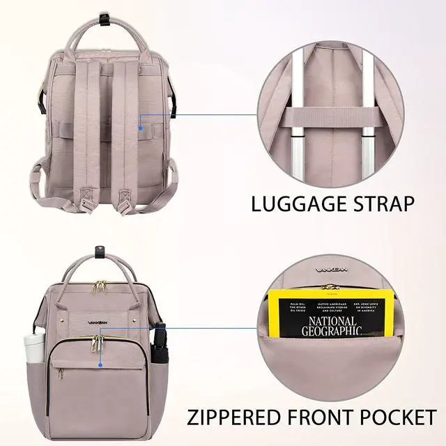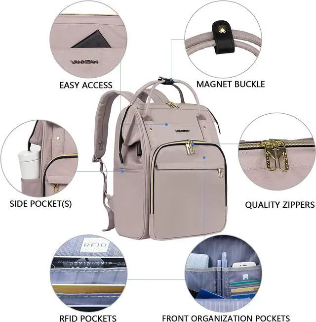 WATERPROOF FABRIC BACK PACK: VANKEAN laptop backpack is made of environment-friendly nylon fabric which is durable and water-repellent, and the light dusty pink backpack is extremely versatile;