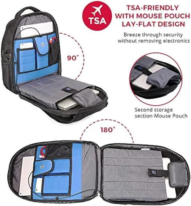 TSA-FRIENDLY & MULTIPURPOSE: At checkpoint it unfolds freely to 90-180 degrees, allowing for quick & efficient navigation quickly through airport security. Exclusively designed for AIRPLANE TRAVEL. Serves as an everyday backpack, spacious college backpack for men, professional backpacks for laptop. Occasional international travel, outdoor camping backpack, hiking backpack with a large capacity with USB charging capability.