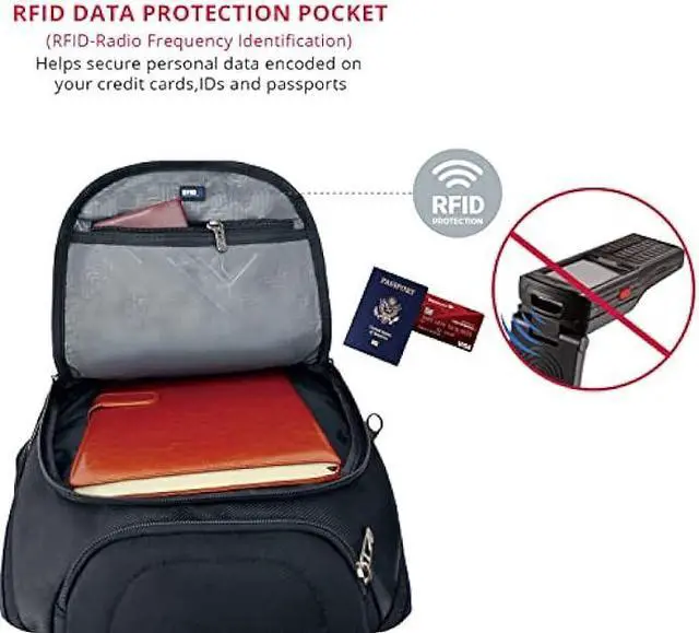 RFID PROTECTION POCKET: RFID protection pocket protects your personal information from being stolen (e. g. credit cards, passports, and driver's license) by an RFID scanner. It can be served as an everyday backpack, spacious college bookbag backpack, professional backpack laptop toting or daily use anywhere life takes you--weekend getaways or for occasional traveling purposes.