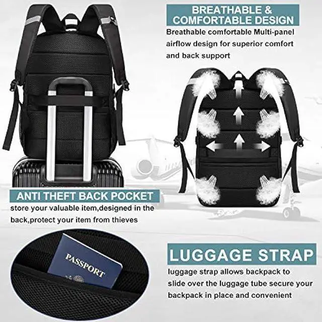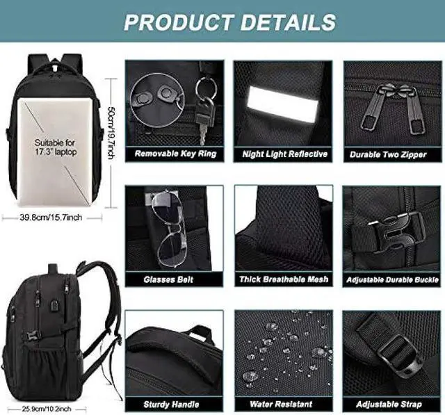 TSA BACKPACK FOR TRAVEL & MULTIPURPOSE - Checkpoint fast approved feature design, makes it pass quickly and easily by unfolding the laptop flat freely 90°-180°without removing your laptop. The large backpack is perfect for indoor/outdoor activities. Served as a large laptop bag, large travel backpack for men women, large business backpack. Mens backpack can use as daily /business/ work /occasional international Travel / Weekend short trip getaways / Airplane travel / Hiking Camping / overnight.