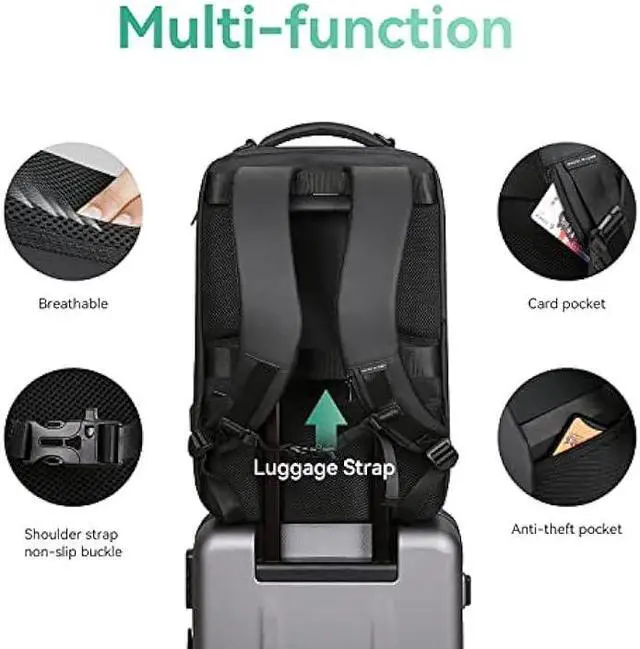 Multi-functional Design: Tech backpack with back U shaped three-dimensional ventilation design helps with air convection, ventilation and heat elimination. Wide breathable mesh shoulder straps with plentiful sponge pads help relieve the stress from your shoulder. The back of the backpack luggage strap design makes the journey easier. In addition there are anti-theft pocket design, shoulder strap non-slip buckle design, card pocket design, etc.