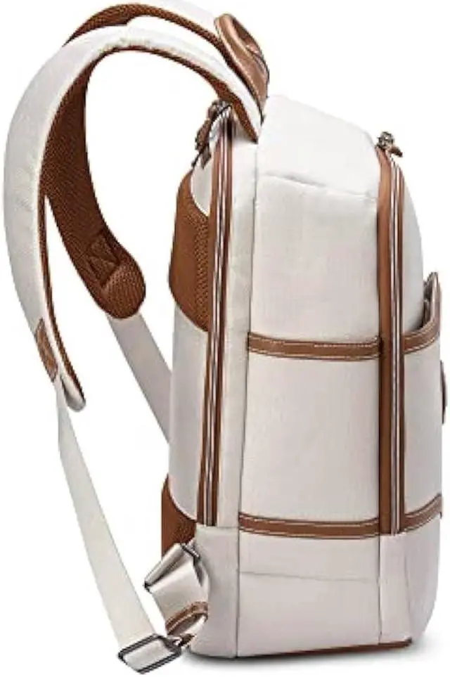 Smart band on the back to slide over the tubes of wheeled luggage; top handle for ease of grab and go, padded shoulder straps and padded back panel for comfort