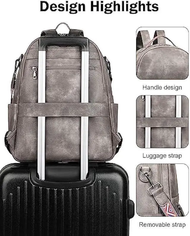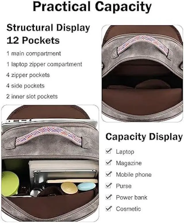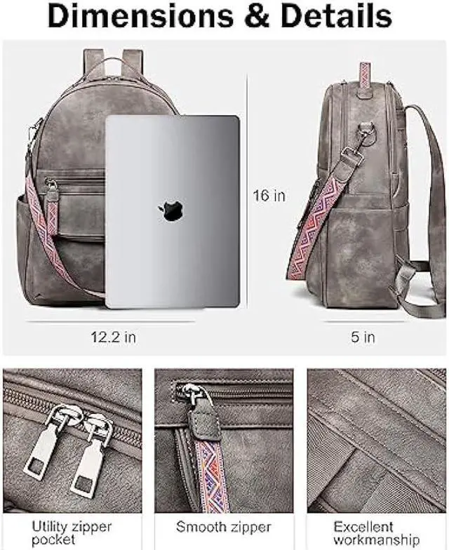 Material: This womens leather laptop backpack is made of the newest waterproof PU leather which is soft and retro, gun color hardware zipper which is smooth and not stuck, strap and backpack connection port reinforced design, make the backpack more durable. so this waterproof vegan leather laptop backpack can deal with a variety of scenarios, such as light rain days, snow days. This is a sturdiness laptop backpack.