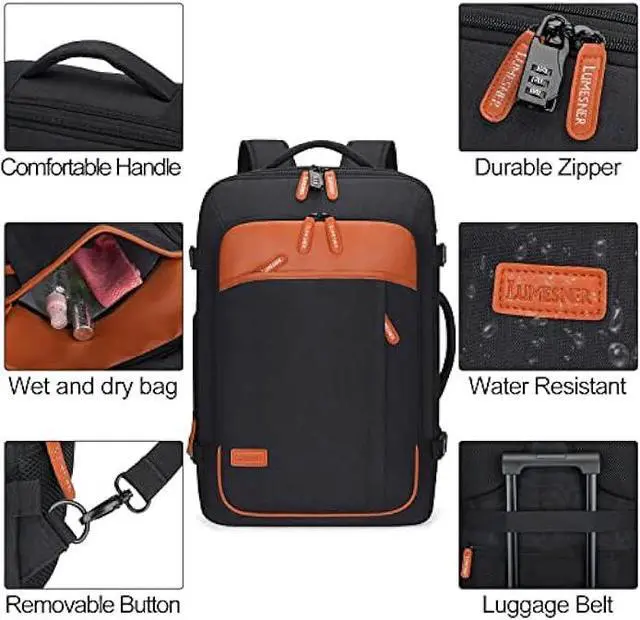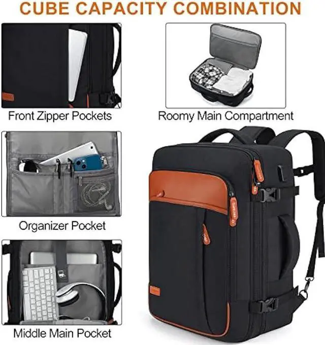 LARGE CAPACITY & EXPANDABLEThis extra large travel backpack with expandable feature offers you more packing capacity up to 40L. Unzipping to get larger storage space then can easily hold packing cubes, make-up bag, outfits, camera bag and gear for 3~7 days of travel. The carry on backpack fits overhead and under seat while on state of standard carry on size, is ideal for men, women, weekend traveler, or occasional vacationer.