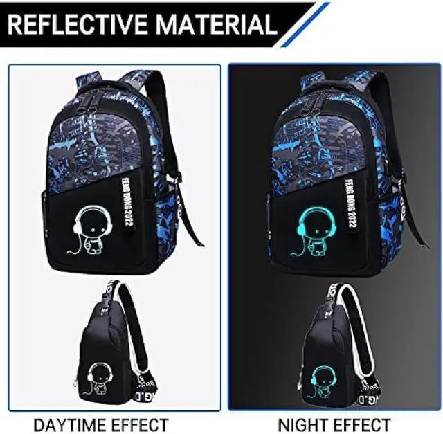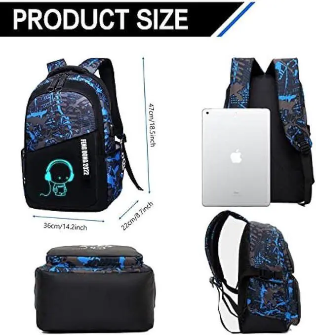 Oxford material Luminous backpacks with High quality oxford fabric water repellent fabric; does not fade, odorless, environmentally friendly and healthy. this can protect your inner things from drizzling. Suitable as a for daily use and when traveling, Christmas presents, birthday presents, etc. Our, womens, men. Multifunctional for,, outdoor, sports, camping, hiking excursion, travel.