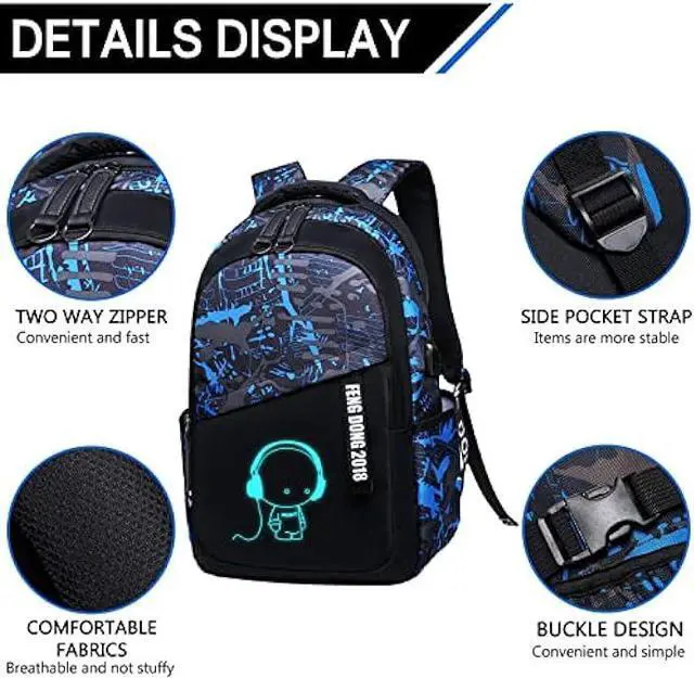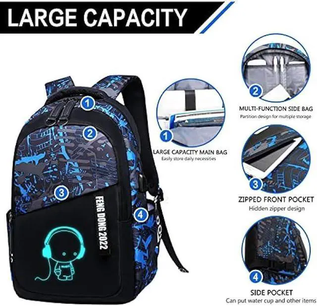USB Charging PortLuminous backpack with a humanized USB charging interface design (NOT INCLUDE THE POWER BANK), it is great to enjoy the convenient charging by connected with the portable charger and your electronic device, easily keep your smart phone full power anytime and anywhere.