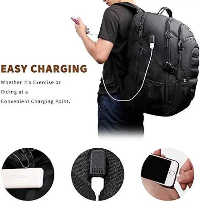 Capacity: 55L, Made from high quality polyester fabric with high density nylon lining for better TEAR & WATER RESISTANT and heavy duty, with USB Charging Port Shockproof