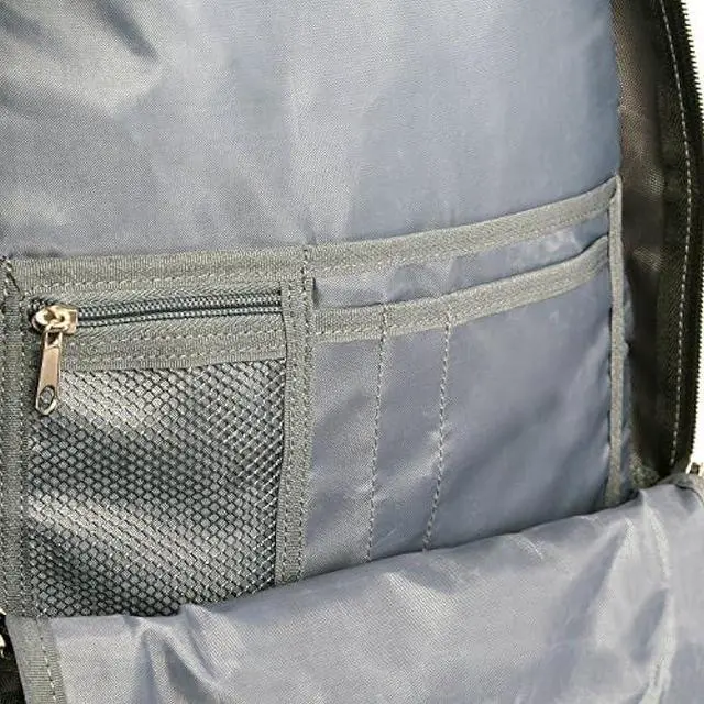 800 D High grade nylon Laptop compartment fits up to a 15 laptop Tablet pocket Deluxe organizer Comfort padded adjustable straps. Air flow mesh back panel. Side water bottle pockets. Multiple compartments. L-13 X W-6 X H-18