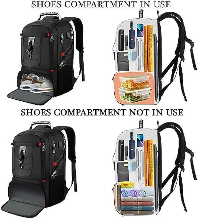 DEFORMATION DESIGNNew upgrades! All zippers have been upgraded to SBS zippers for smoother and more durable. When you store shoes or clothes on shoes compartment, main compartment area will be reduced to provide more space for shoes compartment. When you don't need to carry shoes, the bottom pocket can be folded so that you can carry more items in main pocket. A combination of shoes bag and laptop backpack. You must not miss this 2023 NEW backpack!
