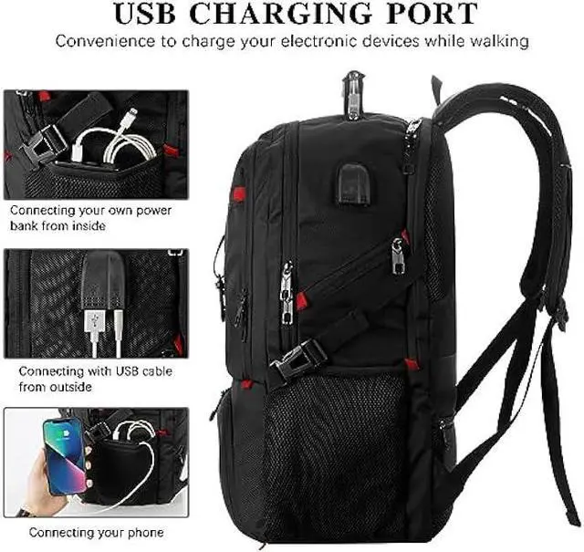 TRAVEL FRIENDLY DESIGNThe laptop backpack combines all convenient features for outdoor activity and travel. External USB CHARGING PORT convenience to charge your electronic devices while walking. LUGGAGE STRAPS allow you to attach to a luggage case and slide along with it. ANTI-THEFT POCKET on the back for your valuables. Perfect partner for business trip and traveling