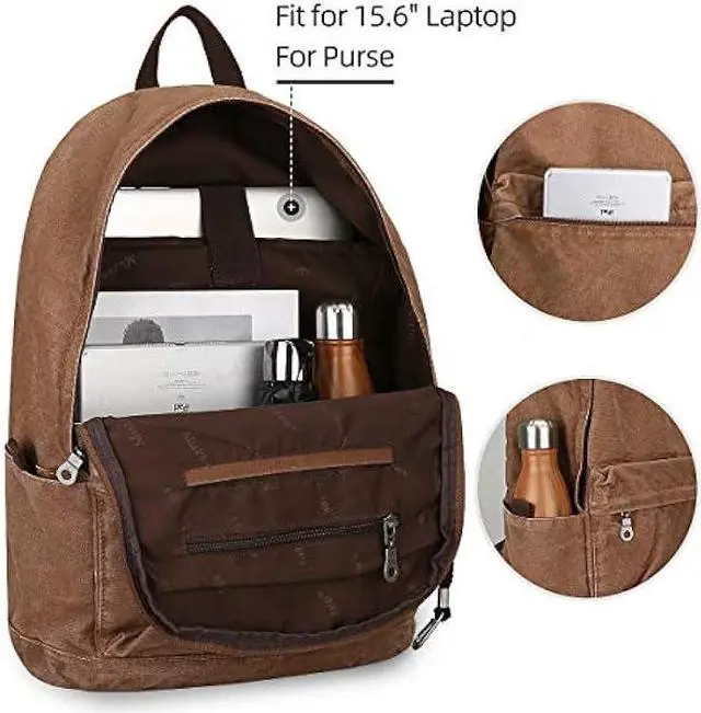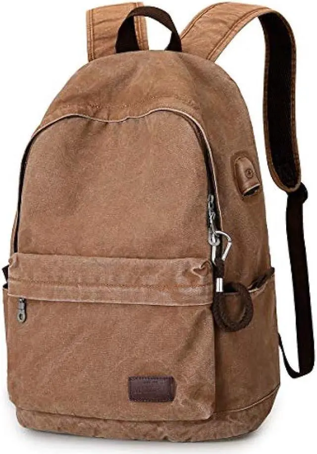 FEATURE: Selection of high-density canvas material make muzee canvas backpack scratch-resistant and abrasion resistant. Genuine leather logo, SBS zippers, retro brass fittings and same manufacturing techniques with LEVIS make it last the retro charming and long performance.