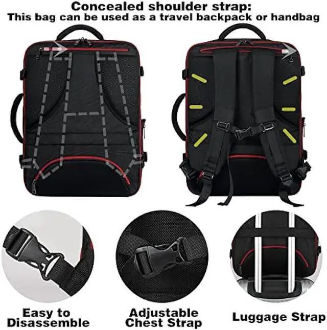 CONCEALED SHOULDER STRAP: The carry on backpack is designed with hideaway padded shoulder straps which can be easily stored away in zippered BACK of BACKPACK, transforming this vacation backpack from carry-on duffel to briefcase style and provide you a more flexible carrying experience. The luggage backpack is light to carry due to its adjustable shoulder straps, comfortable air-mesh ventilated back panel. The best gift choice for Thanksgiving Day, Christmas, New Year, Valentine's Day.