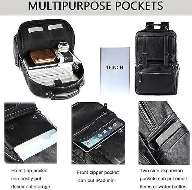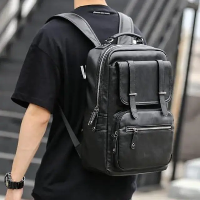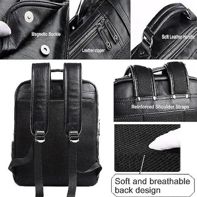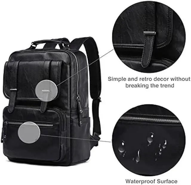 Material: High quality PU Leather backpack. One of a characteristic of this black leather backpack is waterproof. The water resistance of this Business backpack can provide a dry environment for your accessories inside this vintage backpack.
