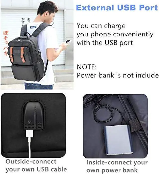 USB & HEADPHONE PORT DESIGN: With a USB charging port and headphone jack extended on the side of the backpack and built-in charging cable and headphone cable inside, provides convenience to charge your phone and listen music while travel walking work. Please noted this backpack doesn't equipped power bank.