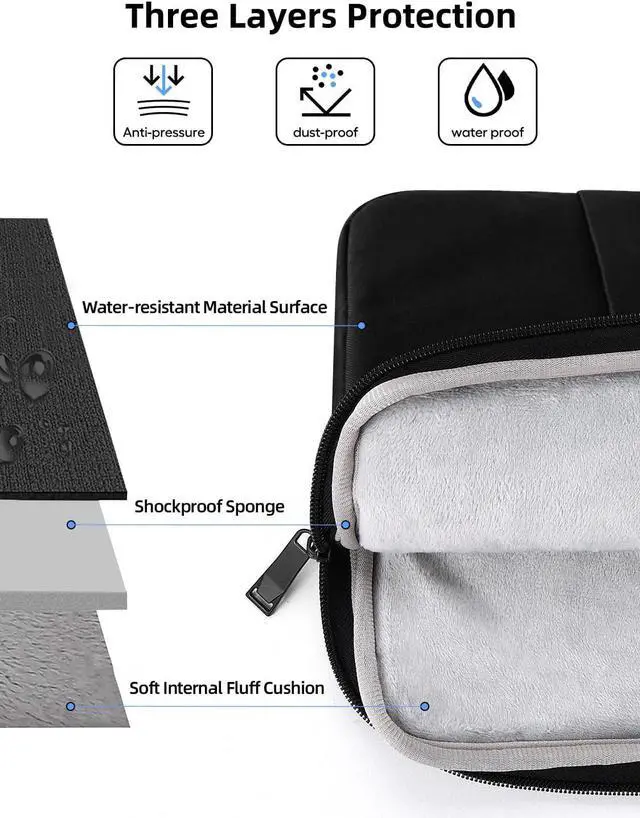 Multi-layer Protection: The exterior of the laptop sleeve is enough durable and waterproof to protect your laptop from moisture and scratches. The inner features fluffy fleece fabric lining for bump and shock absorption and protection of your device against bump and shock.