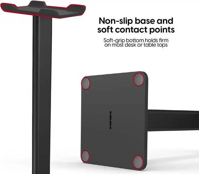 STURDY AND DURABLE: The headphone hook has a flexible yet secure cradle to hold most headphones. The anti-slip base is sturdy with non-slip padding underneath so you do not have to worry about the base scratching your desk surface.