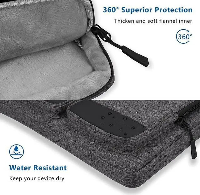 High Quality MaterialAlfheim laptop sleeve is made of eco-friendly polyester fabric, which is water-resident, anti-scratch, shockproof and lightweight. Thick fabric protect laptop/notebook from dust, shocks, bumps and spills, while a soft flannel lining interior provides protection against scratches and dents.