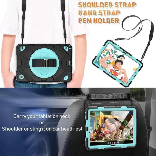 Multifunctional Carrying Strap Different color of this case has its own theme of shoulder strap, its detachable and adjustable, you can carry the Tablet around or use the strap when you go out, and you can also hang it on the back of seat for fun when traveling in cars.